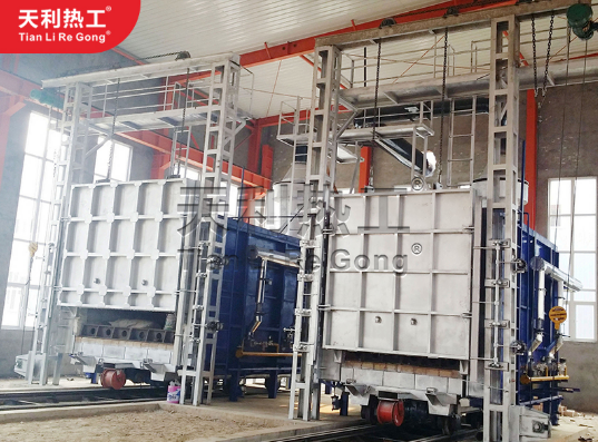 **,臺車爐設備在生產期間爐采用鋼結構及耐火材料,將砌筑的爐體和爐門固定在鋼結構上,使爐墻與臺車周圍密封,后期使用期間在牽引機構的拖動下,該設備的進出爐是可以在軌道上行走的,同時,該設備由耐火材料砌體、框架和行走機構組成。